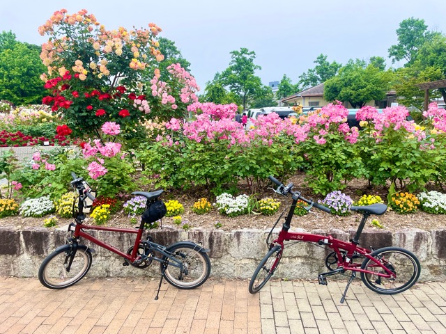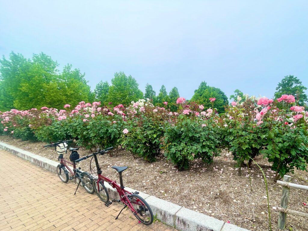 バラ園の中には自転車は入れないので