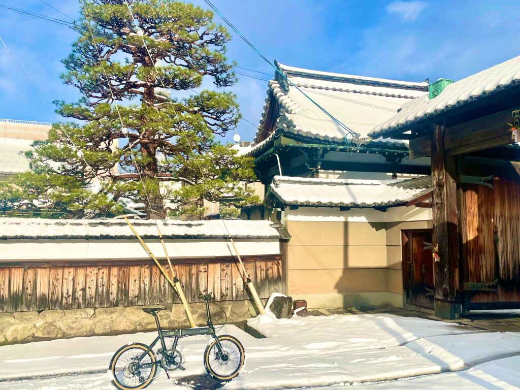 雪が積もったら自転車は… なんだけど、地元の人はそれでも自転車で出かけたりするので、いつも「すごいなぁ」と思って見ている